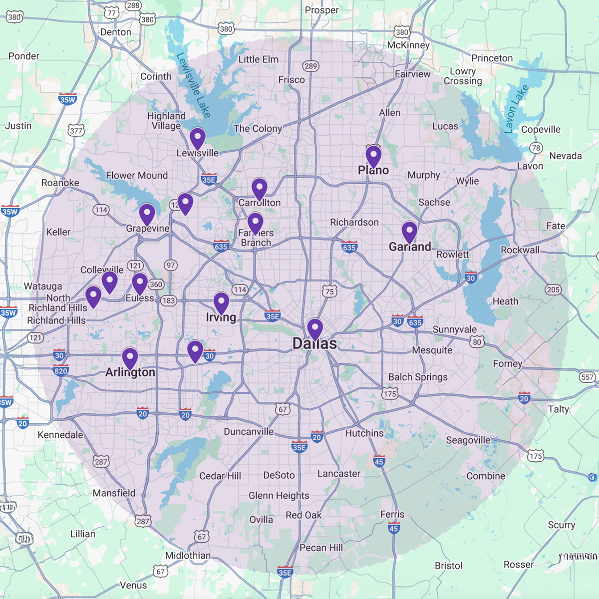 Based in Irving, we provide prompt service throughout the Dallas-Fort Worth Metroplex.